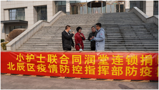 3月10日上午,捐贈(zèng)儀式在北辰區(qū)政府舉行,出席儀式的有北辰區(qū)副區(qū)長(zhǎng)馬希榮、區(qū)防疫工作指揮部組長(zhǎng)竇百鳴、區(qū)防疫工作指揮部辦公室主任楊肖鴻、小護(hù)士公司董事長(zhǎng)楊印江、同潤(rùn)堂連鎖總經(jīng)理?xiàng)顟蚜、小護(hù)士公司董事會(huì)秘書(shū)董曉光、小護(hù)士公司人資行政總監(jiān)方立勝。